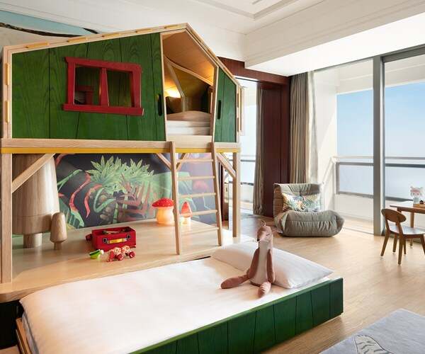 The hotel has a prime location at Golden Dream Bay, adjacent to the commercial blocks and famous scenic spots. It boasts approximately 280 sea-view rooms, directly overlooking the sea and offering the sea breeze and the sunrise. The hotel’s Lobby Lounge, Qinxiangge Chinese Restaurant and Café Qin cater for different tastes. To make your trip more fun and colourful.
